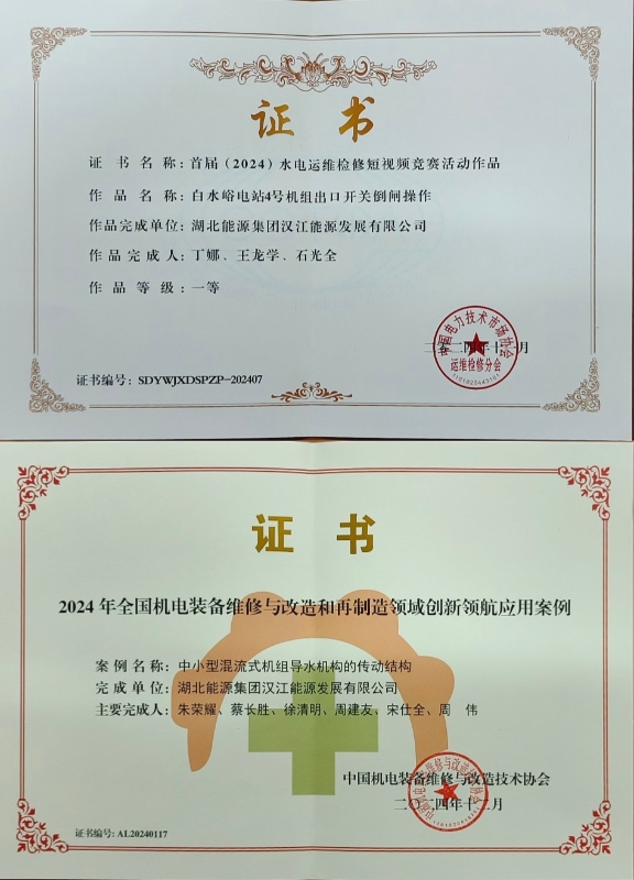 本網(wǎng)訊(丁娜)近日,漢江能源公司制作的《白水峪電站4號機組出口開關倒閘操作》短視頻榮獲中國電力技術市場協(xié)會運維檢修分會首屆水電運維檢修短視頻競賽一等獎,《中小型水輪發(fā)電機組的傳動機構》案例被評為2024年全國機電裝備維修與改造和再制造領域創(chuàng)新領航應用案例。